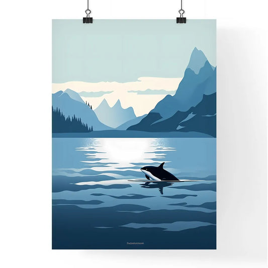A Poster of glacier bay national park - A Dolphin Swimming In A Lake With Mountains In The Background