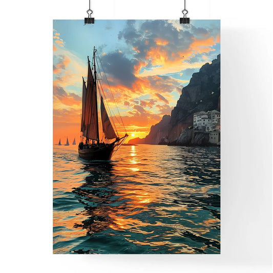 A Poster of fire - A Sailboat On The Water With A Sunset In The Background