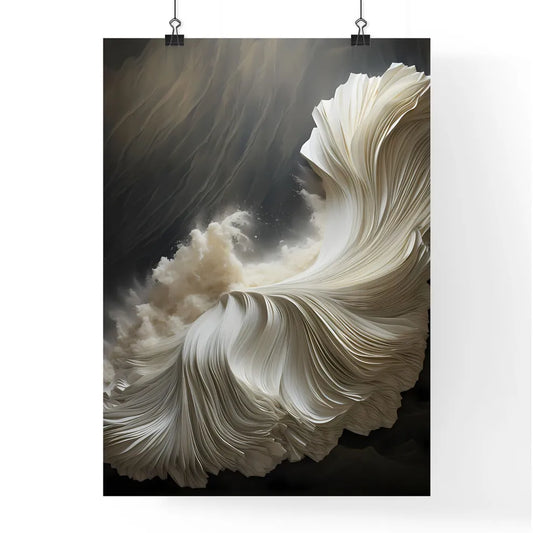 A Poster of gold and silver paper sculpture - A White Waves With A Cloud Of Dust