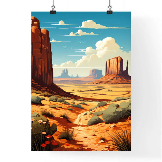 A Poster of Monument Valley Natinal Park - A Landscape Of A Desert With Tall Rock Formations