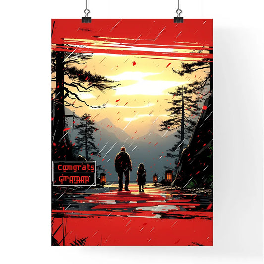 A Poster of the words congratulations dad on a red and black background - A Man And Child Walking In The Rain