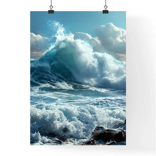 A Poster of waves - A Large Wave Crashing On A Rocky Beach