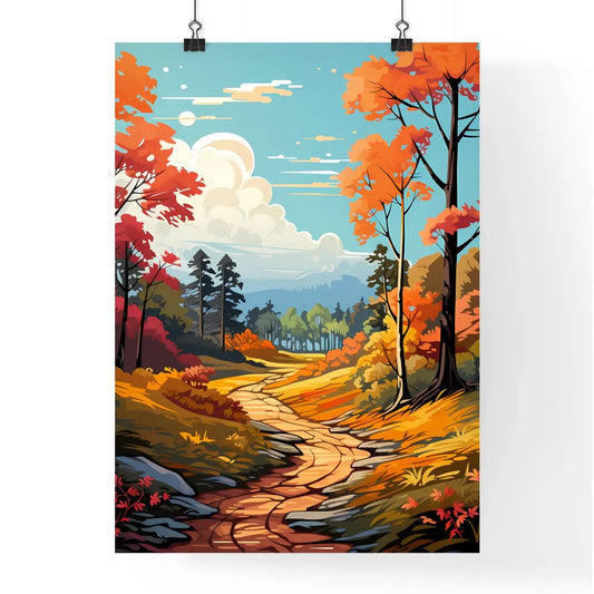 A Painting Of A Man Skiing Down A Road In A Colorful Landscape Art Print