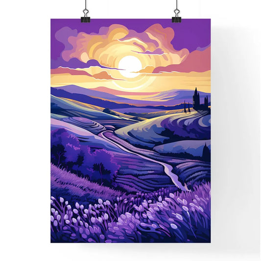 A Painting Of A Landscape With A Road And Lavender Fields Art Print
