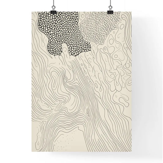 Abstract Minimalist River and Mountains Boho Line Art Print, Neutral Black and White Painting