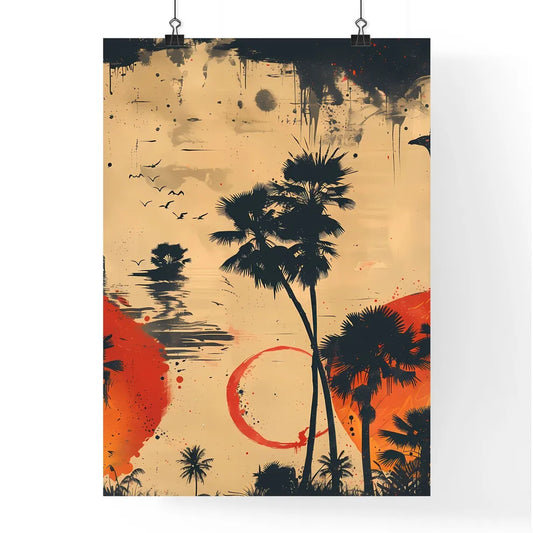 Abstract Giraffe and Palm Trees African Minimalist Painting Background