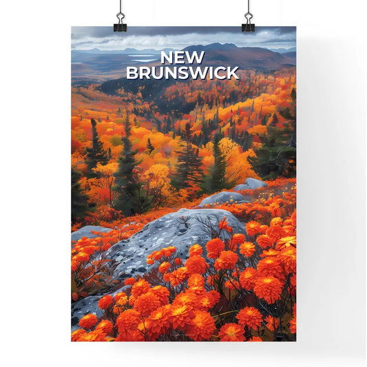 Abstract Landscape Painting of New Brunswick, Canada, Featuring Orange Flowers and Vibrant Trees