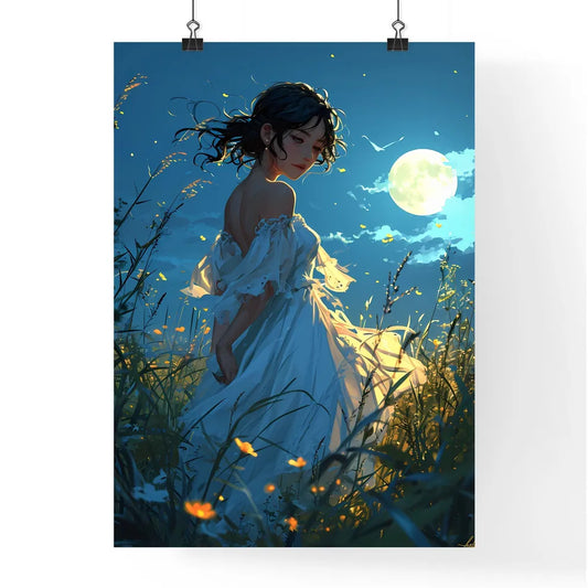 A Poster of a nocturne - A Woman In A Dress In A Field Of Tall Grass
