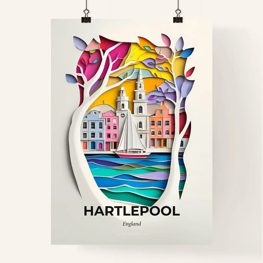 Vivid Hartlepool, England - a paper cut of a city with a boat