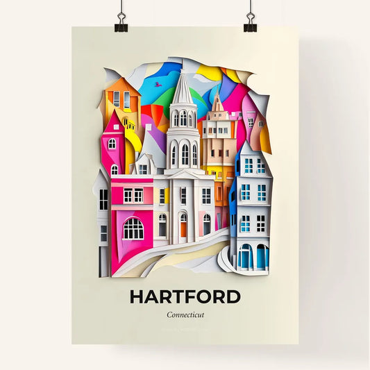 Vivid Hartford, Connecticut - a paper cut of a city with a clock tower