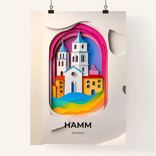 Vivid Hamm, Germany - a paper cut of a church with a rainbow