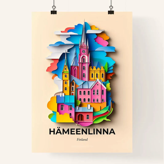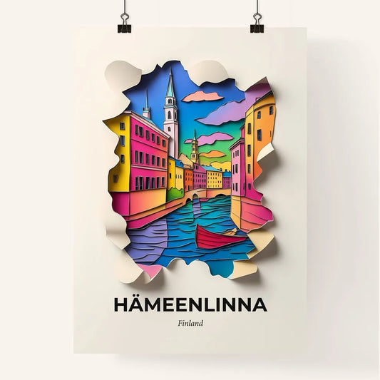 Vivid Hämeenlinna, Finland - a paper cut of a city with a boat