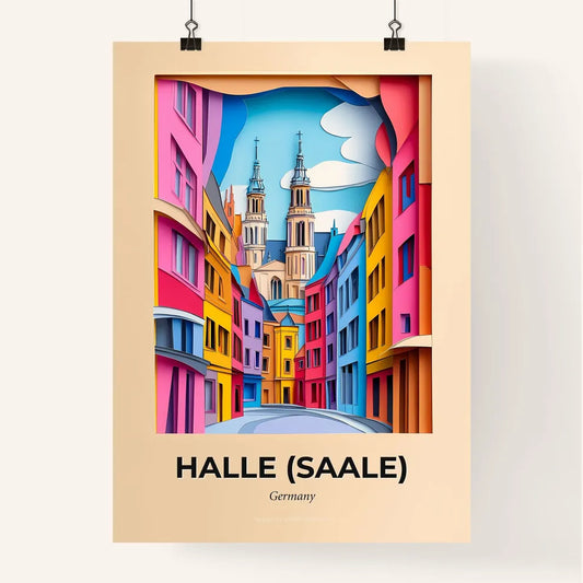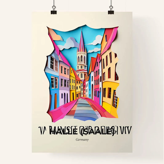 Vivid Halle (Saale), Germany - a paper cut of a city street with a clock tower
