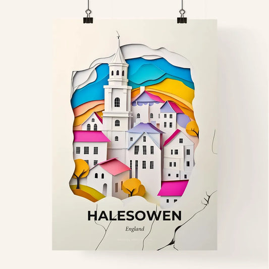 Vivid Halesowen, England - a paper cut of a church and a tree