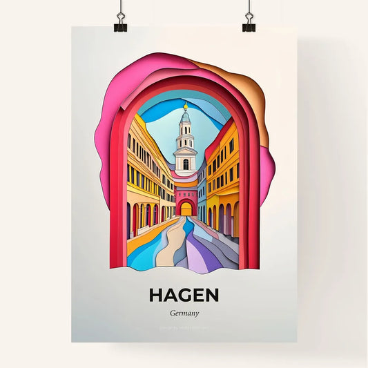 Vivid Hagen, Germany - a paper cut of a street with a clock tower