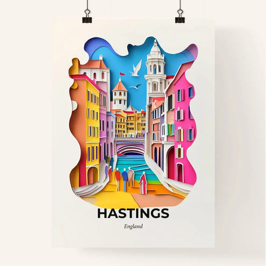 Vivid Hastings, England - a paper cut of a city with a bridge