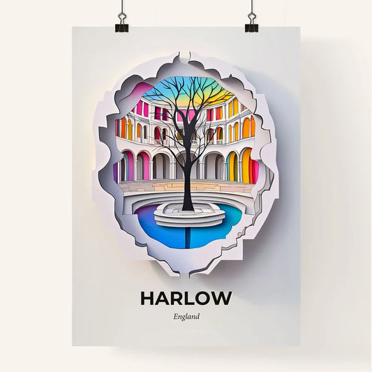 Vivid Harlow, England - a paper cut of a tree in a courtyard