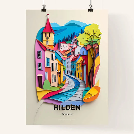 Vivid Hilden, Germany - a paper cut of a city with a church