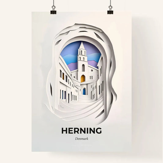 Vivid Herning, Denmark - a paper cut of a church with a clock tower
