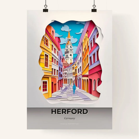 Vivid Herford, Germany - a person walking down a street with a clock tower in the background