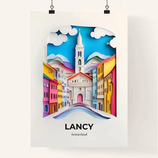 Vivid Lancy, Switzerland - a paper cut of a church and a river