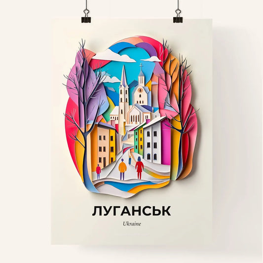 Vivid Luhansk, Ukraine - a paper cut of a city with a church