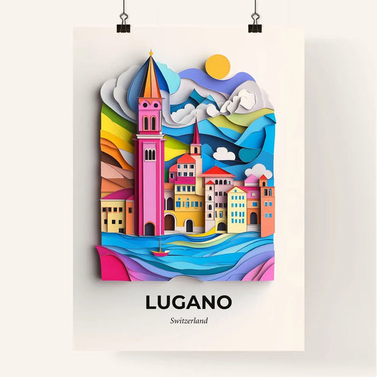 Vivid Lugano, Switzerland - a colorful city with a clock tower on a hill