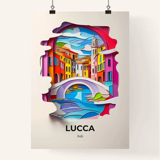 Vivid Lucca, Italy - a paper cut of a bridge over a river