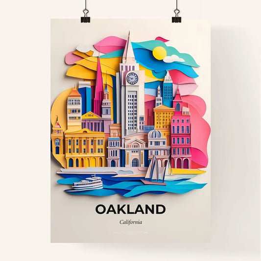 Vivid Oakland, California - a paper cut of a city with a clock tower