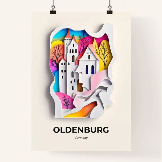 Vivid Oldenburg, Germany - a paper cut of a castle with trees and a rainbow