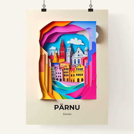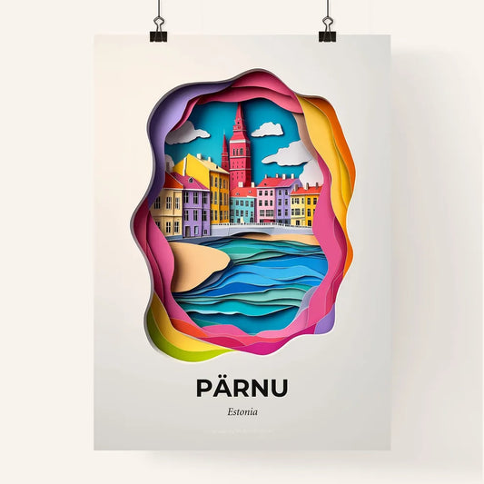 Vivid Pärnu, Estonia - a paper cut of a city with a church