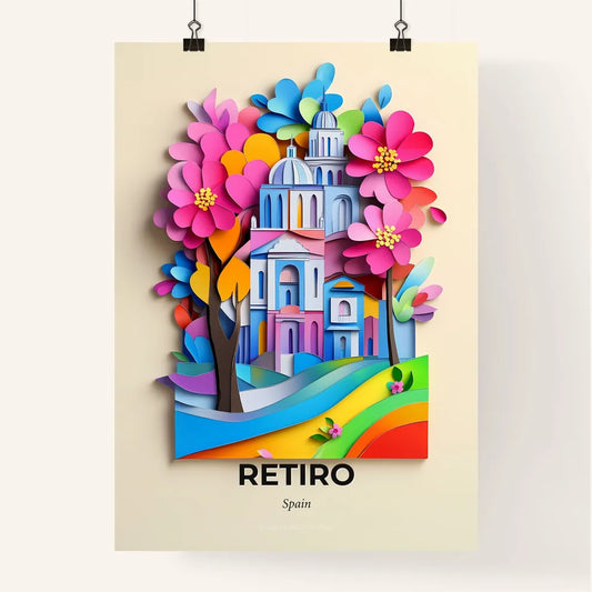 Vivid Retiro, Spain - a paper cut of a church surrounded by flowers