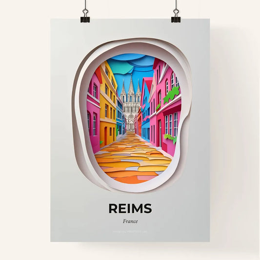 Vivid Reims, France - a paper cut of a city street with a clock tower