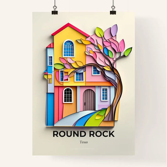 Vivid Round Rock, Texas - a paper cut of a house with a tree