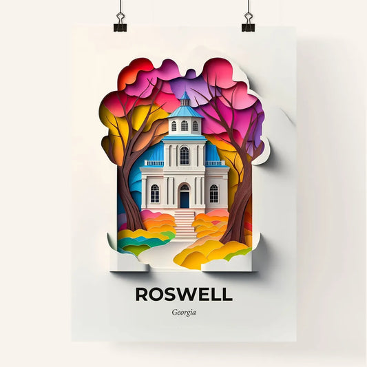 Vivid Roswell, Georgia - a paper cut of a church with trees