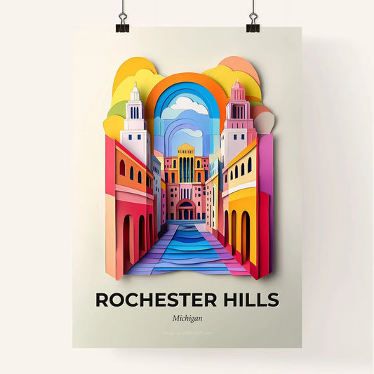 Vivid Rochester Hills, Michigan - a paper cut of a building with trees in the background