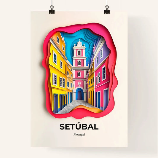 Vivid Setúbal, Portugal - a paper cut of a colorful city street