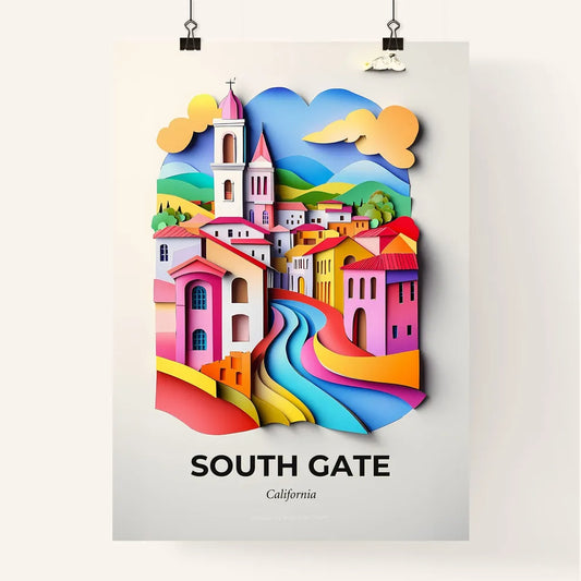 Vivid South Gate, California - a paper cut of a colorful town with a river