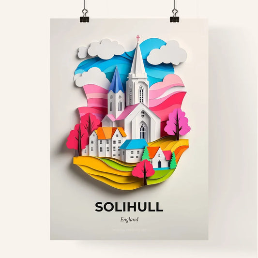 Vivid Solihull, England - a paper cut of a city with a clock tower