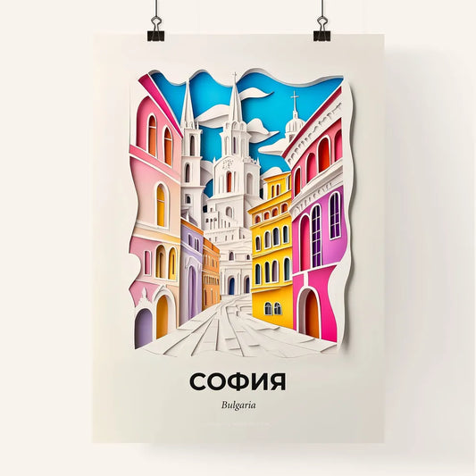 Vivid Sofia, Bulgaria - a paper cut of a city with a clock tower