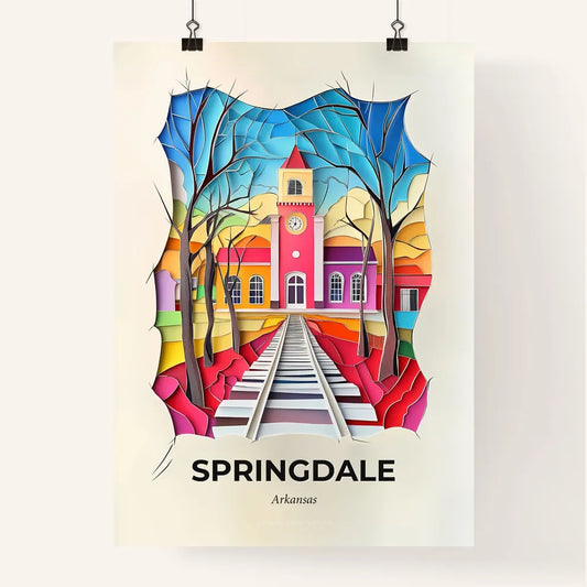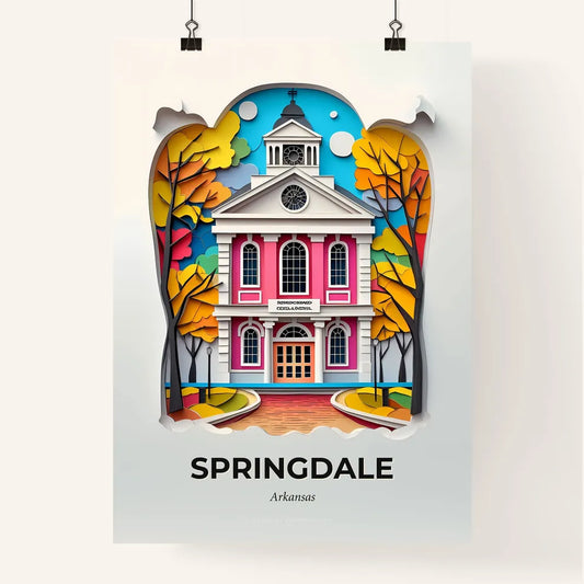 Vivid Springdale, Arkansas - a paper cut of a church with a clock tower