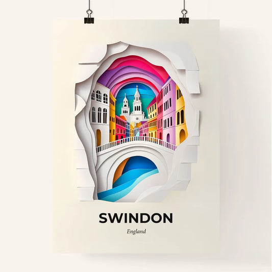 Vivid Swindon, England - a paper cut of a bridge with a church in the background