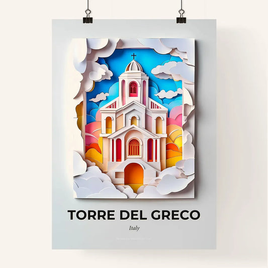 Vivid Torre del Greco, Italy - a paper cut of a church with a sky background