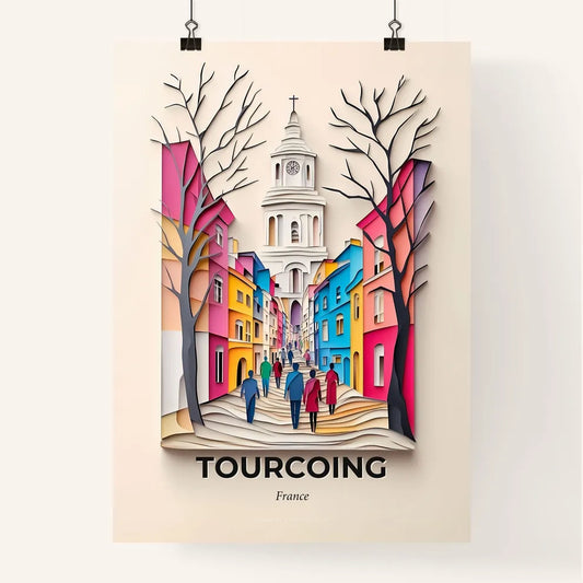 Vivid Tourcoing, France - a paper cut of a city with a person walking down a street