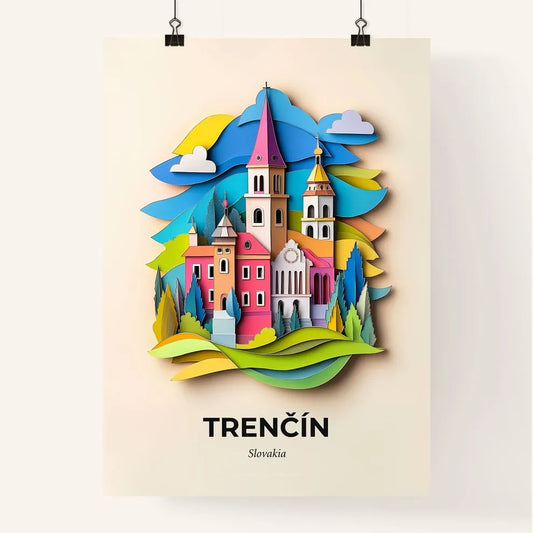Vivid Trenčín, Slovakia - a paper cut of a castle with a clock