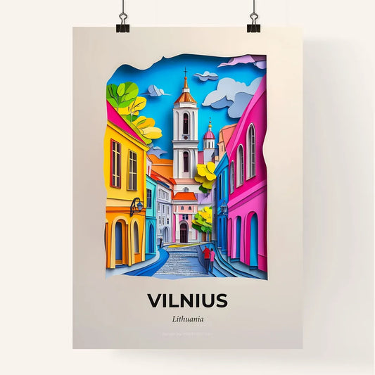 Vivid Vilnius, Lithuania - a paper cut of a street with a church tower