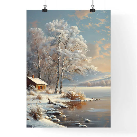 Winter Landscape with Frosted Trees, French Farmhouse, and Lakeside Cottage