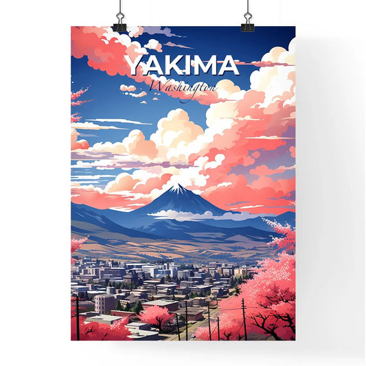 Yakima, Washington, A Poster of a landscape of a city with a mountain in the background