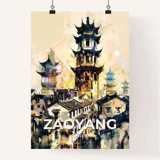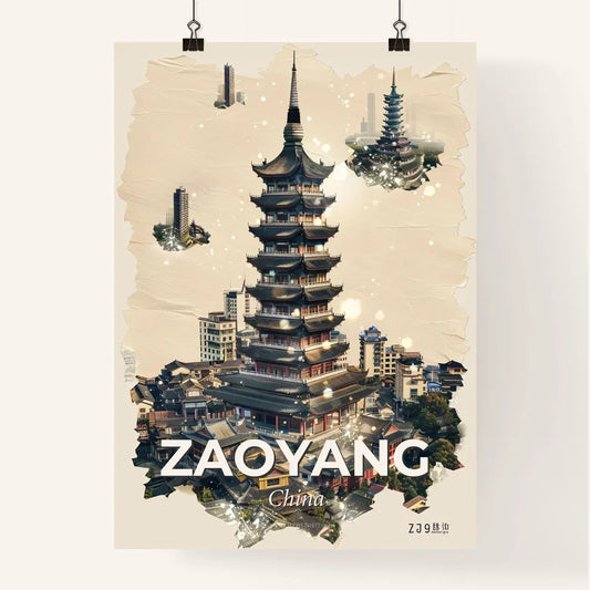 Zaozhuang Skyline Composite Art Minimalistic Poster - A pagoda and buildings in a city