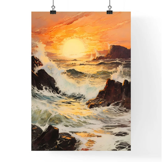 A Poster of breaking ocean wave falling - A Painting Of Waves Crashing On Rocks
